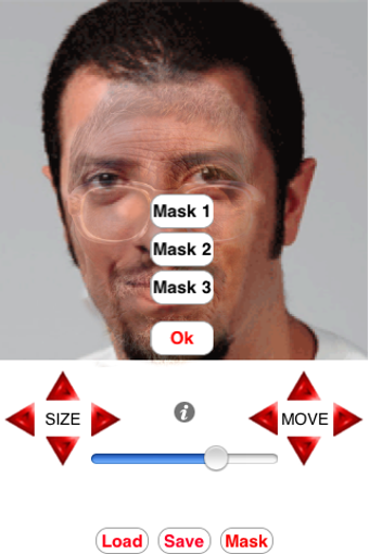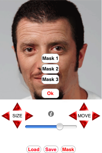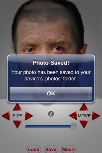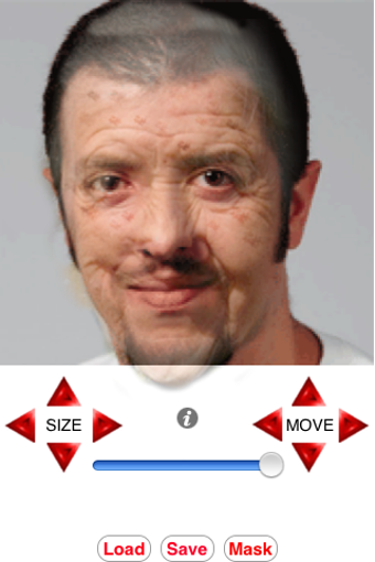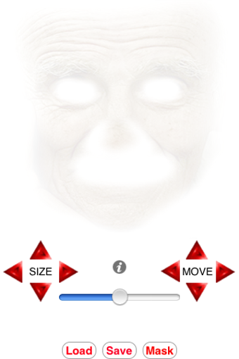 Depois de carregar a máscara escolhida, use os botões "Move" e "Size" para redimensionar e ajustar a imagem. O Age My Face é acima de tudo uma grande diversão: claro, se o resultado final não chocar a pessoa da foto...